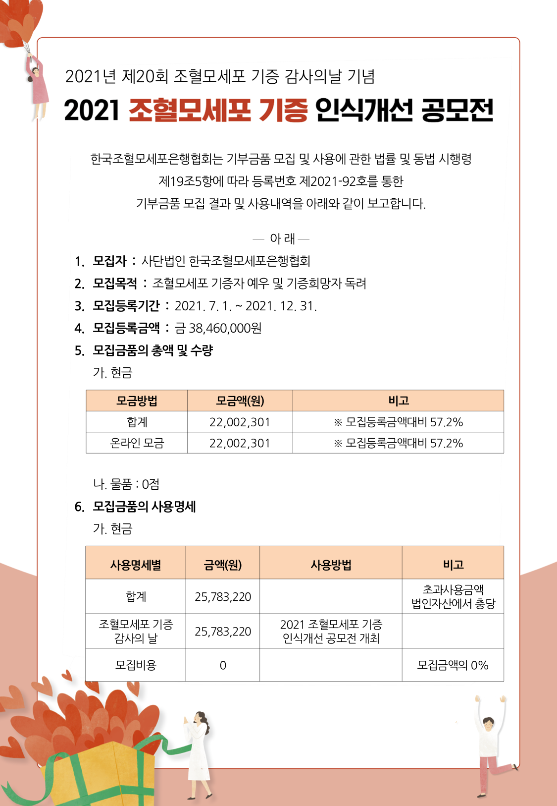 KMDP의 소식을 전해드립니다. 목록 공지 기부금품 모집 및 사용명세 보고(2021) 2021-11-01 조회수:7 서울시 기부금품 모집 등록번호 제2021-92호에 대한 기부금품 모집내역 및 사용명세입니다. 목록 공익제보를 위한 국민권익위원회 신고 안내 KMDP 기업 후원 프로그램 안내 비밀번호 확인 이 게시글의 비밀번호를 입력해주세요 확인